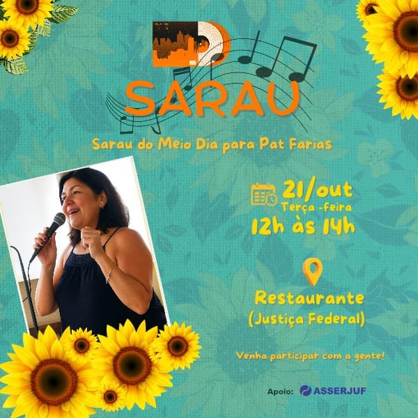 Servidoras(es) e amigas(os) da colega Pat Farias convidam todas e todos para um momento especial de celebração e afeto: o Sarau do
